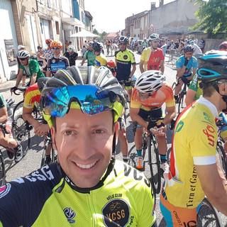 " Un WE du 14 juillet 2019 bien rempli!Partis en mode commando, les 3 mousquetaires du VCSG75 Arezki, Julien et Romain ont savouré une expérience unique lors des Championnats de France Ufolep 2019 à Beaumont-de-Lomagne en Tarn-et-Garonne.Départ de Paris XVIIIE à 2h30 le samedi après la fermeture du bar-restaurant Les 3 Frères, arrivée à Beaumont-de-Lomagne vers 11h après 4 relais de conducteurs à bord de la VCSG75MOBILE munie de ses porte-vélos étrennés pour l'occasion.Accueillis agréablement par la responsable Ufolep du Tarn-et-Garonne dans la Salle des Fêtes, nous récupérons nos dossards et paquetages sous les splendides et rafraîchissantes Halles donnant sur la ligne d'arrivée du parcours. Nous sommes rejoints par la mère de Romain venue de Brioude et une amie de Toulouse, un fan club précieux en course.Après une régénératrice collation pasta salad préparée par Romain, celui-ci se repose en attendant une reconnaissance du parcours de 13,5kms à 15h puis sa course des 30-39 ans à 16h30 (30mn avant appel des coureurs pour attache du transpondeur à la cheville et placement sur la ligne de départ).La chaleur est bien présente pour notre reconnaissance, elle atteindra 37,5° lors de sa course! Le circuit est constitué d'une route plane droite sur l'avenue principale, virage à droite à 90° (avec îlot de séparation) pour une large montée de 500m, virage à gauche à 90° 300m puis legérement en dévers à gauche route-toboggan étroite de 3kms avec vent de face tout du long, ensuite le morceau de choix avec l'étroite côte d'Esparsac de 1,3km à 7,3% en fait une mini-Planche des Belles Filles constituée de 3 paliers de montée avec 2 replats intermédiaires le dernier palier spectaculaire à plus de 15% débouchant sur l'Eglise, virage à droite à 90° vers le plateau étroit en tobaggan sur près de 4kms avec un dernier virage à droite à 180°, enchaînement dans la belle descente vers Beaumont-de-Lomagne avec en toute fin une remontée sur 500m virage gauche à 90° descente puis remontée 300m virage gauche à 90°, descente finale de 500m virage à droite 90° pour rejoindre la ligne d'arrivée sur l'avenue principale.